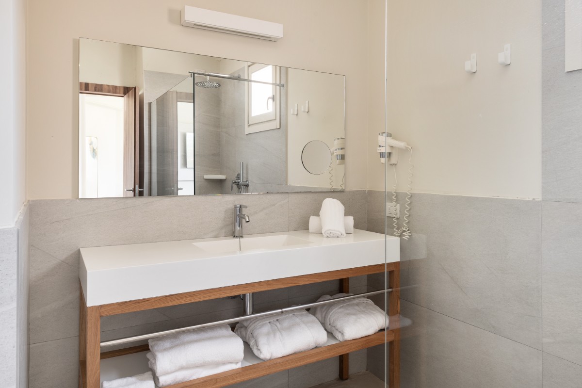 Alle Zimmer haben ein Badezimmer mit Dusche oder Bad, Haartrockner, Klimaanlage, Sat.-TV, Schließfach, Wi-Fi, Mini-Kühlschrank (Zimmerservice auf Anfrage, Getränke gegen Aufpreis, Wasser für den gesamten Aufenthalt inklusive), Gartensitzplatz oder Balkon.